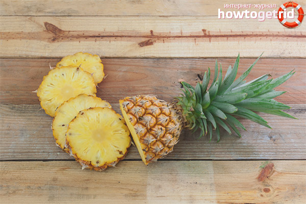 - Il a un effet positif sur la digestion, stimule la sécrétion du suc gastrique, réduit les flatulences et les ballonnements et les coliques.L'ananas est utilisé avec succès pour le traitement de la constipation chronique et des hémorroïdes des femmes enceintes, car grâce à l'abondance de fibres alimentaires, il nettoie parfaitement les intestins des métabolites, des toxines et des toxines.