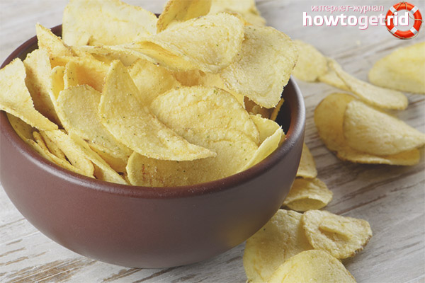 La plupart des entreprises produisent des chips non pas à partir de pommes de terre naturelles, comme le montre la publicité, mais à partir de féculents séchés, de flocons de riz ou de farine de maïs. Les croustilles classiques sont composées de 30% de poudre pure, 60% d'amidon et 10% de composants chimiques nocifs conçus pour améliorer les caractéristiques gastronomiques du plat.