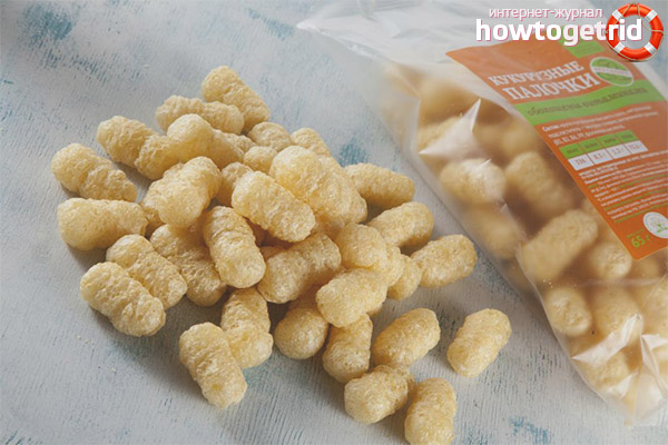 Les bâtonnets de maïs ne peuvent pas être attribués à des produits utiles qui doivent être inclus dans le menu pour enfants. Si possible, protégez votre enfant contre la consommation de telles friandises. En tout cas, ils n'apportent aucun bienfait pour la santé.
