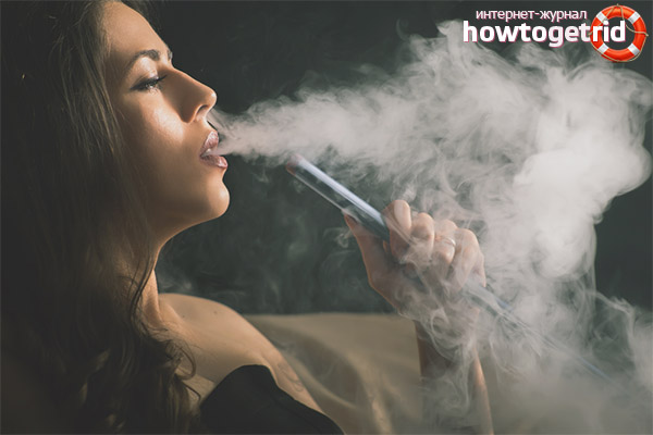 Cependant, il est important de savoir qu'en réalité le narguilé n'est pas si inoffensif pour la santé. Lorsqu'une personne inhale l'arôme d'un narguilé à travers un embout buccal, elle reçoit beaucoup plus de fumée qu'un fumeur d'une cigarette fumée. Dans ce cas, la fumée se transforme en monoxyde de carbone, qui pénètre à l'intérieur et s'installe dans les poumons d'une personne. Lorsque vous fumez un narguilé pendant environ une heure, autant de monoxyde de carbone pénètre dans le corps du fumeur qu'il peut en être produit après avoir fumé un paquet entier de cigarettes.