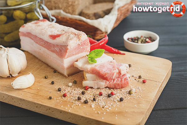- Seulement 100 gr. la graisse contient jusqu'à 800 kcal. 70% du produit n'est que de la graisse animale. Si vous abusez des graisses, vous commencerez bientôt à prendre activement du poids. Les porcs sont des animaux sans scrupules, ils sont donc le plus souvent affectés par divers parasites.