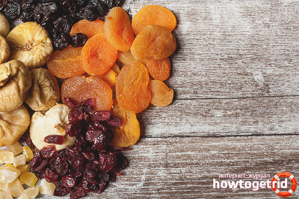 Il n'est pas nécessaire de croire à tort qu'il est possible de consommer énormément de fruits bénéfiques. Un jour est autorisé à manger pas plus de 3 morceaux d'abricot séché, 2 dattes, la moitié des raisins secs. Tous les fruits secs, à l'exception des abricots secs, sont consommés après le repas principal.
