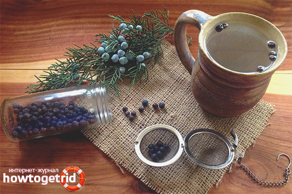 - Bath. Pour faire un bain de genévrier, vous devez verser 200 grammes de plante séchée dans un litre d'eau chaude. Laisser un moment, afin que la composition soit bien infusée. La teinture résultante est ajoutée au bain et y reste pendant une demi-heure.