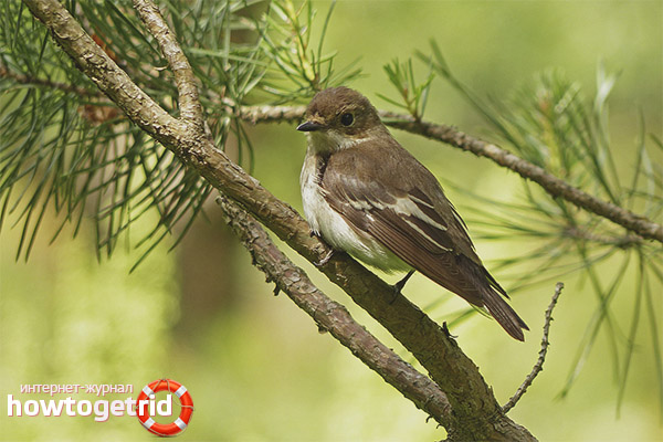 - De nombreuses espèces de la famille des moucherolles construisent leurs nids sous la forme d'un bol. Ils les ont sur un arbre ou dans des buissons denses. Parfois, le nid se trouve dans le mur fissuré d'une maison abandonnée. Parmi eux, il existe des espèces qui produisent deux descendants en une saison.