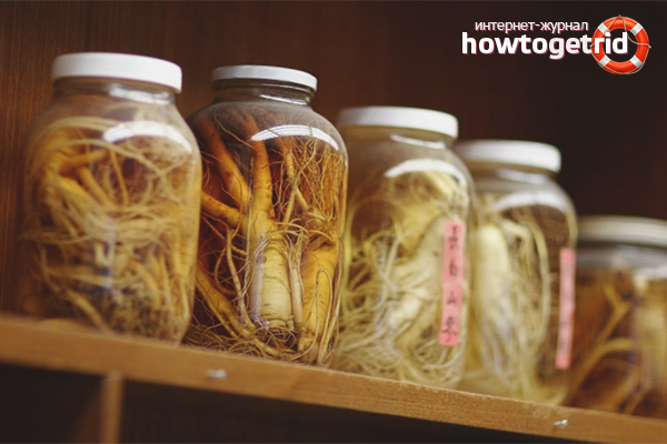La teinture de ginseng doit être prise en petites portions, 10-30 gouttes le matin et le soir, arrosées avec beaucoup d'eau. Habituellement, la teinture se boit dans un cours - 3-4 mois par an pendant un mois. Souvent, la teinture est ajoutée directement au thé. Cela rend non seulement la boisson plus utile, mais donne également au thé un goût et un arôme piquant. Les Chinois insistent sur toute la racine sans la couper. Dans ce cas, il est mariné beaucoup plus longtemps, après quoi la racine est coupée en couches minces et ajoutée à divers plats de la cuisine locale. Pour eux, la racine de ginseng fait partie intégrante de la culture, sans laquelle aucun événement traditionnel ne peut se passer.