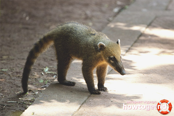 - Assurez-vous d'habituer l'animal à une laisse, soyez prudent et prudent lorsque vous marchez. Un nosha peut se comporter de façon imprévisible avec d'autres animaux. Ne relâchez pas le prédateur, il est habitué à la volonté et peut s'échapper en toute sécurité. En plus de cela, le coati ne peut pas être habitué au plateau. Cela vaut également la peine d'être préparé. Je dois nettoyer souvent.