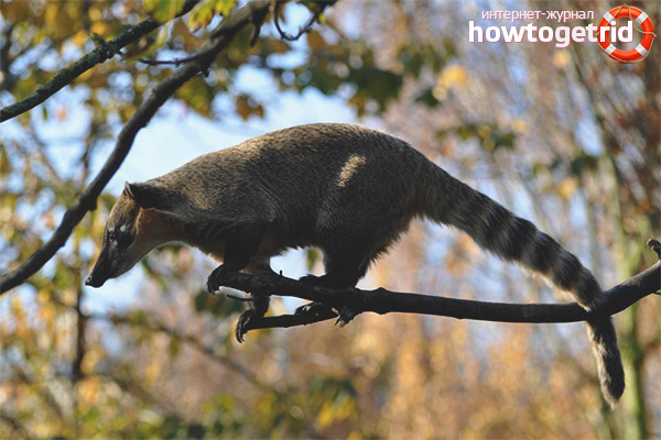 - Les animaux présentés sont affectés à la famille des ratons laveurs. Cependant, leurs habitudes sont complètement différentes. Nosoha ne fait pas de mal, ne montre pas d'agression excessive. En partie pour cette raison, les gens sont très heureux d'apporter du coati chez eux. Ils se distinguent par l'obéissance, un caractère épris de paix et le fait qu'ils traitent bien une personne. Si vous équipez une cage / volière à la maison, y mettez une maison personnelle, la nosha vivra heureuse pour toujours.