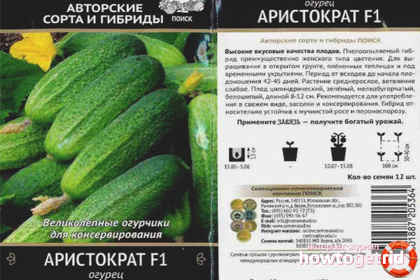 Les graines d'aristocrate, produites par des sélectionneurs de Corée du Sud, sont distribuées dans le monde entier, mais sont principalement cultivées sur le sol ukrainien. Les résidents d'été cultivent et plantent cette variété dans la rue et dans des espaces clos - serres et serres. La culture appartient à une maturation précoce - elle donne une récolte déjà 35 jours après la germination des semis.