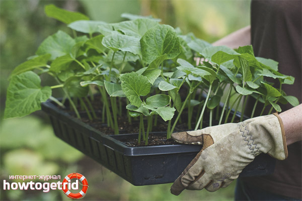 Si l'atterrissage se rend directement aux crêtes sous un film pelliculaire, il est préférable d'effectuer ces procédures dans la seconde moitié d'avril. Les semis sont généralement plantés fin mai, lorsque le sol est déjà assez chaud.