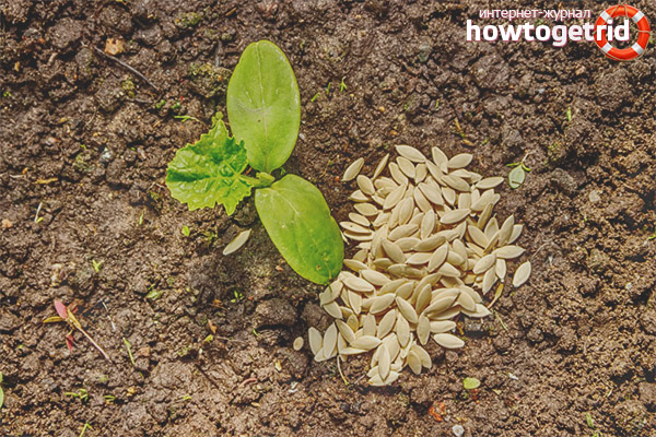 Les graines sont placées à une distance de 40 cm les unes des autres.Ils sont posés à une profondeur de 1,5 à 2 cm Par le haut, le récipient est recouvert de polyéthylène ou d'un film plastique et placé dans un endroit chaud et ensoleillé. La température doit être de +23 à +26 degrés. Une plantation serrée de graines peut entraîner le développement de maladies, vous devez donc garder une distance lors du semis.