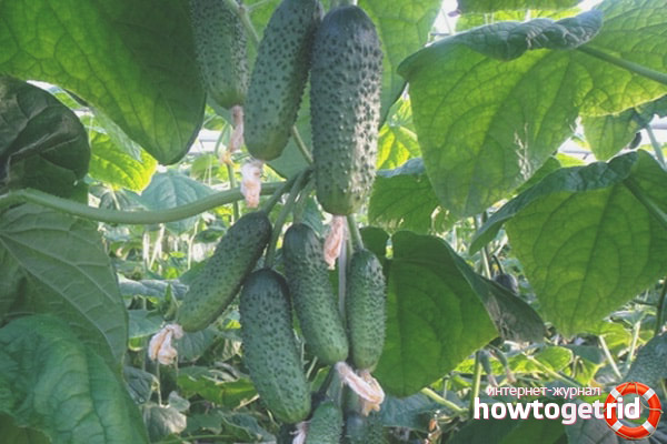 - Les buissons atteignent 2 mètres, ils doivent donc être attachés. Les grilles spéciales sont les mieux adaptées à cet effet. Pour obtenir des concombres plus gros, il est nécessaire de briser la moustache formée sur les plantes.