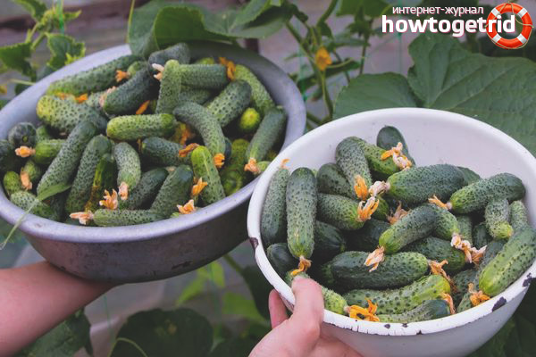 Afin de retirer les cornichons de la brousse, vous devez commencer la récolte lorsque les concombres sont étirés de 3 à 5 centimètres. Si vous souhaitez supprimer les cornichons, vous devez attendre un peu lorsque les fruits atteignent 5-8 centimètres de long.