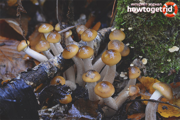 Notez que pendant la période de fructification de l'agaric au miel, de nombreux autres champignons poussent également, caractérisés par une forte similitude avec lui.