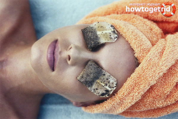 - Compresses de thé. Les variétés noires et vertes conviennent. La composition du thé contient de la caféine et du tanin - ces composants contribuent au rétrécissement des vaisseaux sanguins, réduisent l'enflure, car ils ont un effet astringent, éliminent l'enflure de la peau. En parlant de remèdes pour le gonflement des yeux, on ne peut que mentionner le thé à la camomille. Le produit combat efficacement l'inflammation, a un effet calmant, soulage les irritations, les rougeurs et les gonflements. Vous pouvez éliminer les poches si vous appliquez des tampons de coton sur les paupières, après les avoir humidifiées dans du thé fraîchement infusé.