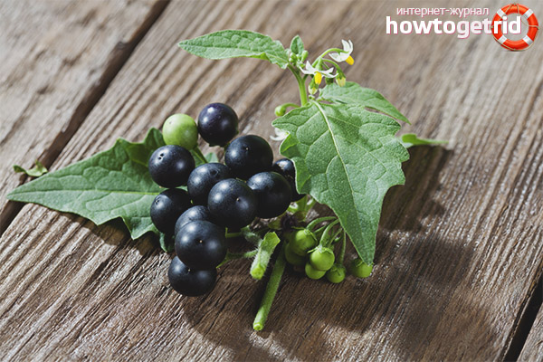 Parfois, une plante peut atteindre une hauteur d'un mètre. Pour lui, une tige caractéristique en position verticale. Il a un grand nombre de branches qui ont une couleur violet bleuâtre. Les feuilles sont vert foncé avec des bords dentelés. Les fleurs sont des semi-parapluies. Le diamètre des fruits mûrs atteint 1 cm, ils sont brillants, avec une peau fine. L'originalité prononcée se distingue par leur goût, dans lequel il y a une légère amertume. La plante a d'autres noms populaires, par exemple, on l'appelle la baie de la sorcière.