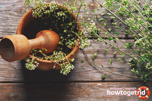 Si une infection a accidentellement visité la cavité buccale, un rinçage et un rinçage avec des solutions préparées à base de jus de sac de berger sont nécessaires. L'herbe est représentée avec la pathologie suivante: