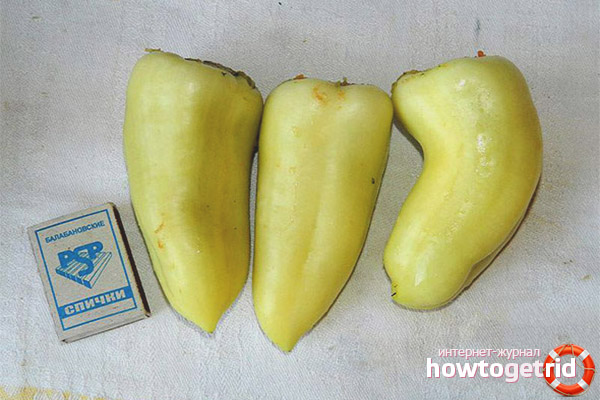 De nombreux producteurs de légumes veulent en savoir plus sur les caractéristiques de la culture avant de planter une variété particulière dans leur jardin. Si vous étudiez les avis d'un grand nombre de jardiniers, vous pouvez découvrir que Blanche-Neige donne des fruits attrayants à l'extérieur avec un goût et un arôme excellents. Les poivrons ont la forme d'un triangle ou d'un cône. La surface du fruit est légèrement nervurée. Le pédoncule est pointé vers le haut, il n'est pas enfoncé dans le fœtus.