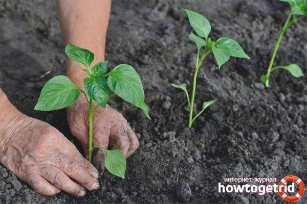 Le poivre tolère négativement un manque d'eau. À la suite du séchage, de petites fissures bien observées apparaîtront sur la couche supérieure du sol. Un arrosage correct des semis après la plantation est une procédure obligatoire qui est urgente.