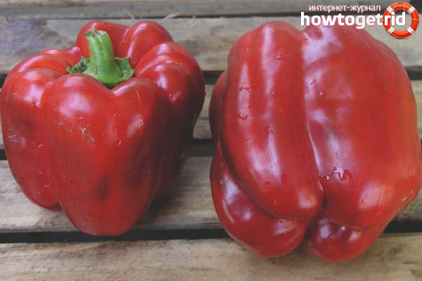 Les poivrons mûrs ont une grande taille et une forme ressemblant à un prisme. La peau est lisse avec un éclat brillant. Le poids d'un fruit mûr est en moyenne d'environ 200 grammes, bien que vous puissiez également trouver des fruits pesant 250-300 grammes.