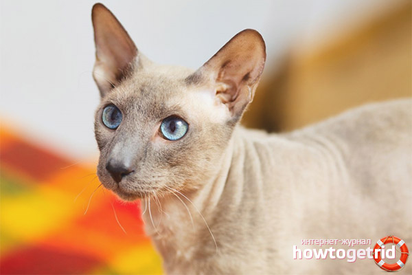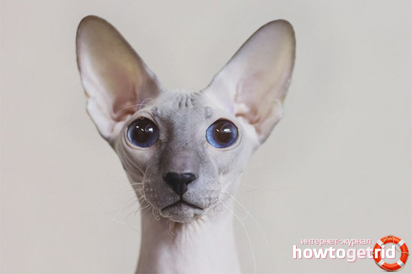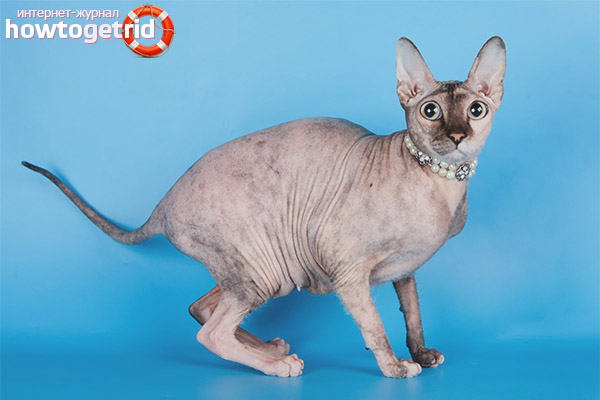 - Chauve - le chat n'a absolument pas de poils. Le corps de l'animal ressemble au caoutchouc, qui est dû aux sécrétions cutanées.
