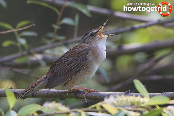 Cricket de chanson - l'oiseau est très prudent, mais néanmoins, avec son chant inhabituel, ses trilles irisés, il se trahit.