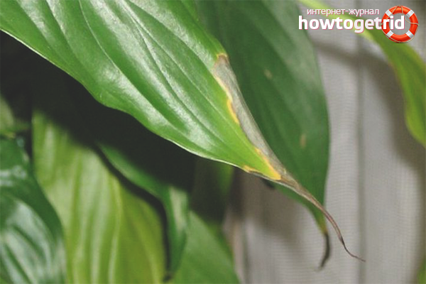 Que faire. Tout d'abord, vous devez déterminer la cause exacte: le soleil est coupable ou l'air excessivement sec. Mieux encore, si les propriétaires veillent à l'avance aux conditions de détention. Lorsqu'il est placé en été sur un rebord de fenêtre chaud, il est impératif de protéger le spathiphyllum de la lumière directe du soleil. C'est facile à faire avec un rideau léger et mince, un morceau de tissu blanc ou du papier de bureau ordinaire.