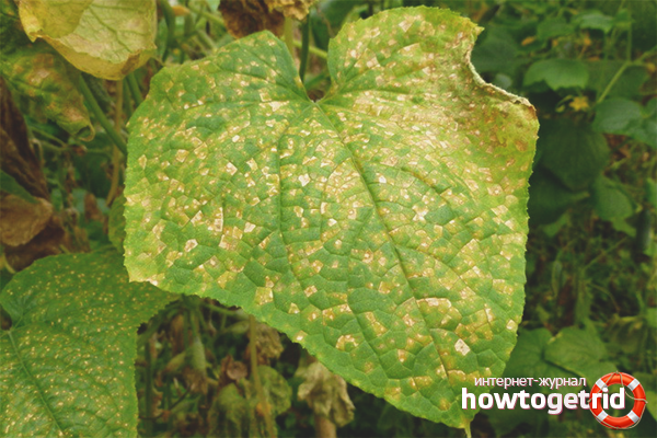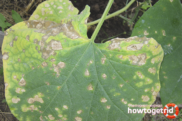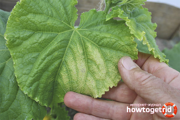 - Inspection périodique des concombres à la recherche de taches ou de stries suspectes. Et puis la plupart des jardiniers commencent à battre dans les tambours uniquement lorsque les concombres signalent le jaunissement de masse des bardanes.