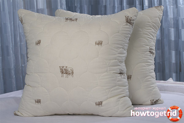 Il y a des oreillers avec une couverture en laine. Dans ce cas, la composition interne peut être remplie de matières premières organiques ou naturelles, mais la housse elle-même est en laine de mouton. Il se réchauffe bien, mais le plus souvent, la couverture est suffisamment dure, car pendant un certain temps, il sera bon de s'y reposer, mais un long sommeil ne sera pas confortable.