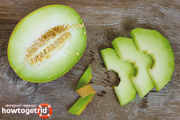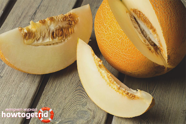 La quantité maximale de friandises par jour est de 1,5 kg pour un adulte en bonne santé. L'excès menace l'indigestion, les nausées et les ballonnements. De plus, ne combinez pas les desserts au melon avec d'autres types de fruits et baies, pâtisseries, produits laitiers et protéinés.