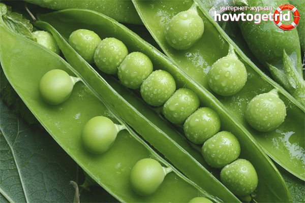 - Les pois verts doivent être mangés par des personnes qui ont souffert d'un gonflement des tissus des organes internes et des membres. Le produit normalise le fonctionnement des reins, élimine les fluides et les sels du corps.
