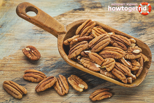 Si vous décidez d'améliorer votre santé à l'aide de pacanes, vous devez introduire le produit dans votre alimentation quotidienne, en commençant par des portions minimales. Après vous être assuré qu'il n'y a pas de réaction allergique, le nombre de noyaux augmente jusqu'à l'apport journalier recommandé. N'abusez pas des noix s'il y a des contre-indications.