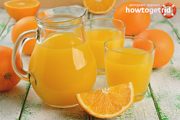 - Le jus d'orange peut être utilisé avec n'importe quel régime, même le plus difficile. En raison de la faible teneur en calories, le produit ne nuira pas à votre taille.