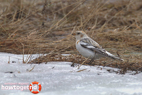 Le bruant est aussi appelé moineau blanc; il vit de préférence dans les régions climatiques froides. En raison du fait que les individus en termes de caractéristiques externes sont blanchâtres, ils se fondent parfaitement avec les étendues enneigées et peuvent facilement être masqués.