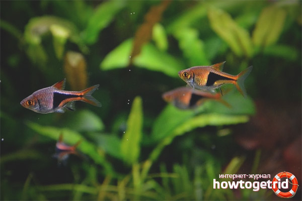 Les poissons d'aquarium rassbori complètement sans prétention et capables de s'adapter à toutes les conditions. Ils vivent dans un petit aquarium. Un réservoir d'environ 40 litres suffit pour un troupeau.
