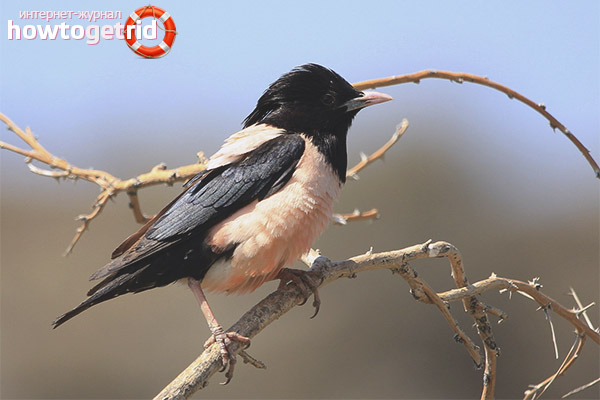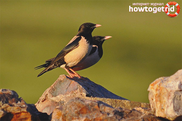 Sous l'étourneau rose est compris assez intéressant dans ses caractéristiques externes de l'oiseau. Les représentants de la famille préfèrent construire des nids sur des terrains rocheux, ainsi que dans les crevasses des bâtiments en pierre. On les trouve dans les zones montagneuses, près des ravins et autres endroits de ce type. Des couples séparés qui veulent de l'intimité et une existence tranquille occupent des creux vides dans les arbres.