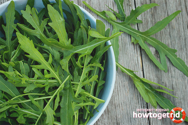 La roquette soutient bien le corps pendant les régimes et l'activité physique. Pour perdre du poids en mangeant ces feuilles juteuses, il suffit de réduire la teneur en glucides lourds et en graisses dans l'alimentation, de consommer des aliments protéinés et des plats de légumes.