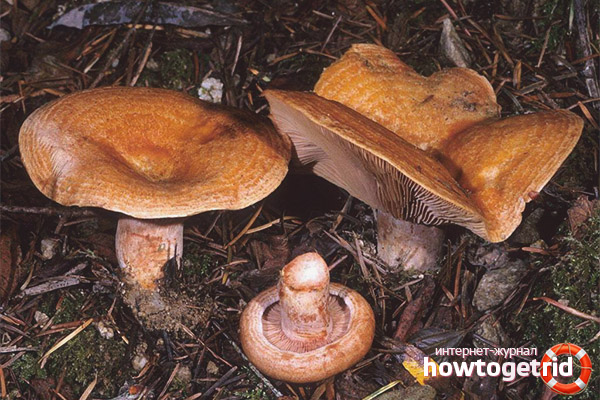 Safran rouge - un délicieux champignon comestible. Cette espèce a également d'autres noms bien connus: noble, gastronomique, authentique, forêt de pins, automne. Le chapeau de champignon de diamètre atteint 150 mm, la surface est orange clair, muqueuse au toucher. La casquette safran est de forme régulière (cylindrique), la couleur correspond à la couleur du chapeau. Le goût de la pulpe de la fructification est tendre et agréable avec un arôme fruité prononcé. Le plus souvent, ce type de champignon se trouve dans les forêts de conifères de notre pays (dans l'Oural, en Sibérie). La transformation culinaire implique la torréfaction, le ragoût et le décapage des champignons, ce type ne convient pas au séchage.