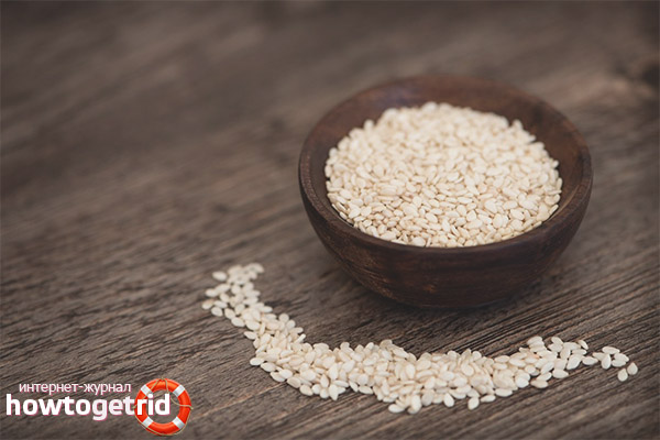 - Le sésame améliore la motilité intestinale, la nettoie de la congestion, élimine la constipation et normalise les selles dans leur ensemble. Grâce à un léger effet diurétique, les reins sont nettoyés, l'excès de liquide sort des tissus.