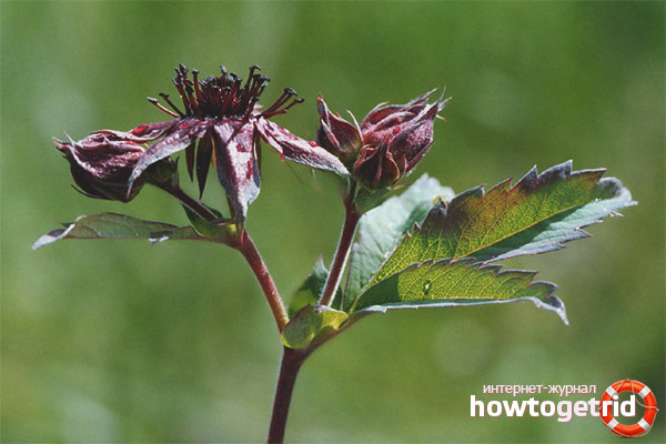 La plante est vraiment en mesure de l'aider si vous utilisez une teinture faite à partir des racines sèches de cette plante. La base est la vodka. 150 g de racine sèche broyée de potentille des marais doivent être ajoutés par litre. La composition est infusée pendant trois semaines. La réception est effectuée à une dose égale à une cuillère à soupe, 3-4 fois par jour.