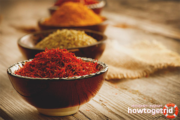 - Lors de l'ajout d'épices aux plats, il est impératif de respecter la mesure. Le safran est l'épice la plus forte qui peut provoquer de graves conséquences pour le corps humain. Les enzymes actives peuvent perturber le système nerveux central et entraîner de graves intoxications.