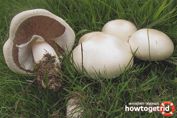 Dans le même temps, des cueilleurs de champignons inexpérimentés peuvent également facilement trouver dans la forêt des représentants toxiques de cette famille de champignons, qui, comme deux gouttes d'eau, peuvent ressembler à un champignon de champ. L'aspect comestible présente quelques similitudes avec un champignon pâle, souvent appelé cueilleur de champignons. Le champignon pâle est très toxique, il est donc nécessaire de ramasser les champignons dans la forêt avec grand soin. Il est important de se rappeler que l'aspect comestible est rose dans la couleur des plaques, tandis que le grèbe pâle est blanc. Il y a aussi deux anneaux bruns et lisses sur la patte de crapaud à l'état mûr.