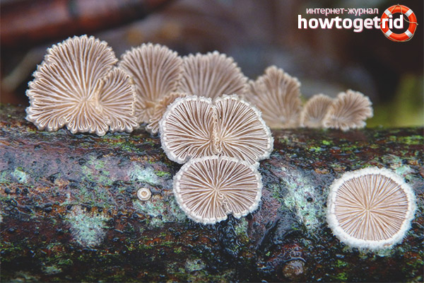 Le champignon a l'apparence de plaques minces fissiles et divergentes dans différentes directions. Les plaques peuvent se fermer ou s'ouvrir. Lorsque le champignon sèche, l'écart se ferme. Cette circonstance est une sorte de condition d'adaptation à la croissance dans les régions où les conditions climatiques ne peuvent se vanter d'une abondance de pluie. La pulpe du champignon a une odeur inexpressive, mince et dense dans la nature. La poudre de spores est blanche. Lorsque le corps du fruit sèche, il conserve suffisamment ses propriétés jusqu'à l'année prochaine.