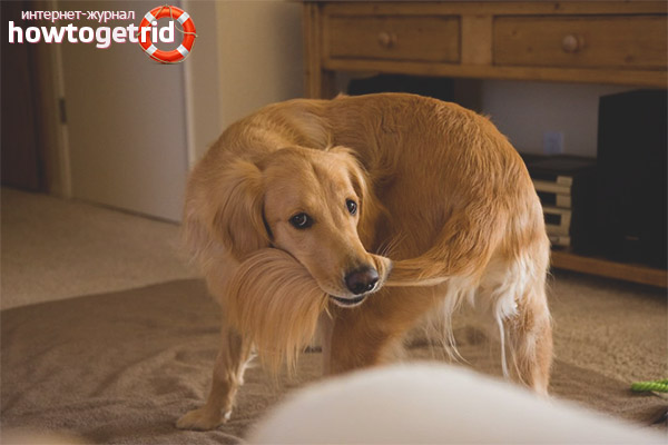 Si avant le chien ne montrait pas d'intérêt pour sa queue, le chien ne tirait pas pour la mordre, la lécher, alors le propriétaire devrait faire attention à la zone de la queue. Pour commencer, vous devez vérifier l'absence de plaies, d'épines, de tiques. Si un tel problème n'est pas perceptible, il est recommandé d'amener l'animal chez le vétérinaire.