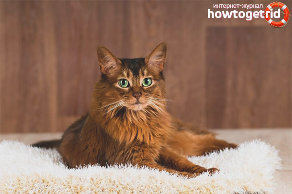 Et un chat somalien? C'est un animal incroyablement beau avec un pelage incroyablement beau, ainsi qu'une queue tout aussi luxueuse. En apparence, le chat est un peu comme un renard, ce qui le rend incroyablement attrayant.