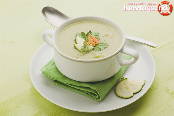 - Variation diététique et facile à mettre en œuvre du plat présenté. Il plaira aux catégories de personnes qui se soucient de leur silhouette et surveillent leur poids. Nous suggérons de faire de la soupe avec l'ajout de chou-fleur (300 gr.). Obtenez également une livre de courgettes, quelques gousses d'ail, du beurre (20 gr.), De la crème sure (40 gr.), Des assaisonnements.