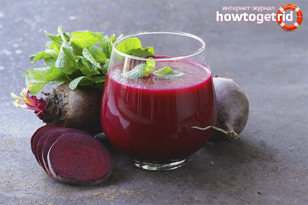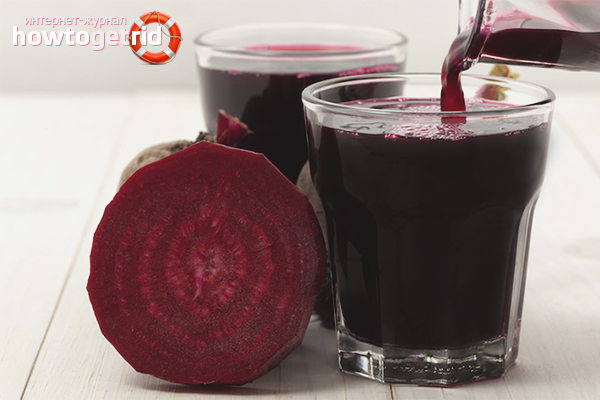 - La composition est présentée aux catégories de citoyens obèses ou en surpoids. Dans de tels cas, le jus de betterave est mélangé avec du jus de pamplemousse, de prune, de concombre, de céleri, de carotte et de pomme. Dans le contexte d'un apport systématique, il y a une augmentation du métabolisme et la dégradation des graisses.