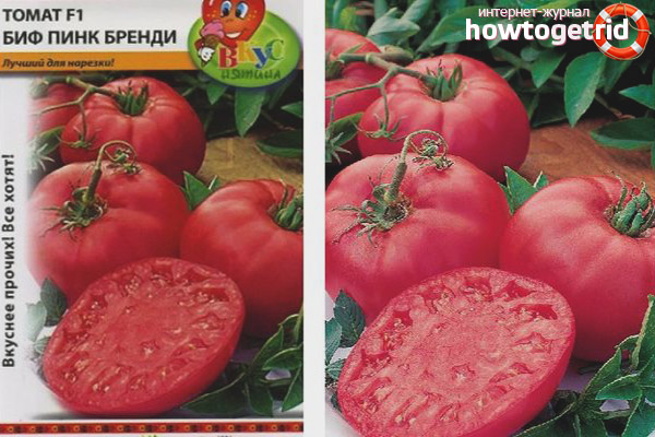 Le brandy F1 Tomato Beef est un grand hybride de maturité moyenne, avec de gros fruits de couleur rose saturée. Sous réserve des conditions de croissance, il est possible d'obtenir des fruits pesant jusqu'à 1 kg. Les plantes dimensionnelles, clairsemées, atteignent jusqu'à deux mètres. Les buissons nécessitent une jarretière, un pincement.
