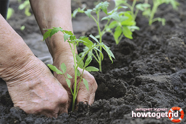 La plantation de semis dans le sol a lieu le 65e jour après le semis. La disposition des pousses dans le sol est de 40 par 50 centimètres. C'est une option idéale pour placer les plantes les unes des autres à une distance optimale pour le traitement ultérieur, l'apparition d'inflorescences et, à l'avenir - la maturation des fruits.