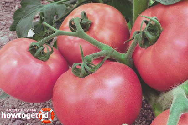 Ce sont des tomates roses. Ils n'ont pas de tige axiale, cependant, il est souvent considéré que c'est une série de pousses consécutives, ou juste la tige qui a la première inflorescence.