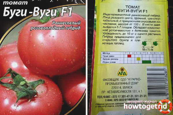 Les fruits sont savoureux et beaux, riches en solides et en sucre. La tomate boogie-woogie atteint une hauteur de 1,2 m, nécessite un attachement, ainsi que l'enlèvement des beaux-fils. Les feuilles sont vert foncé, les fruits sont roses, légèrement aplatis. Les tomates à usage universel conviennent à la consommation fraîche et à la mise en conserve.